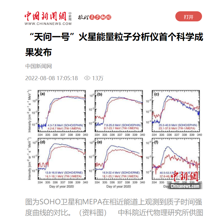 8月8日,記者從中科院近代物理研究所獲悉,由澳門科技大學(xué)、中國(guó)地質(zhì)大學(xué)(北京)、中科院近代物理研究所、蘭州空間技術(shù)物理研究所、中國(guó)科學(xué)技術(shù)大學(xué)、美國(guó)阿拉巴馬大學(xué)亨茨維爾分校和中科院國(guó)家空間科學(xué)中心組成的研究團(tuán)隊(duì)利用天問一號(hào)火星能量粒子分析儀于近期獲得了首個(gè)科學(xué)成果,研究討論了基于該載荷在地火轉(zhuǎn)移軌道中觀測(cè)到的一個(gè)太陽高能粒子事件。