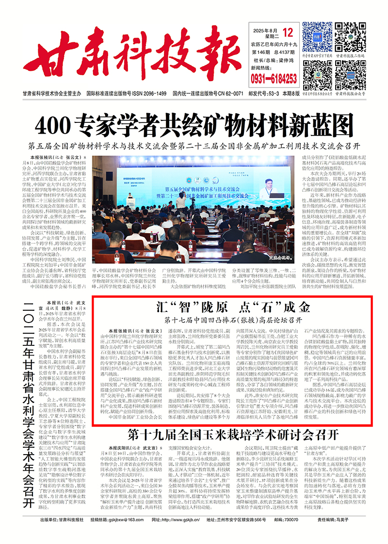 【甘肅科技報】匯“智”隴原 點“石”成金 第十七屆中國凹凸棒石(張掖)高層論壇召開