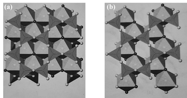 (a)三八面體和(b)二八面體結(jié)構(gòu)示意圖(圖片來(lái)源:《結(jié)晶學(xué)和礦物學(xué)》)