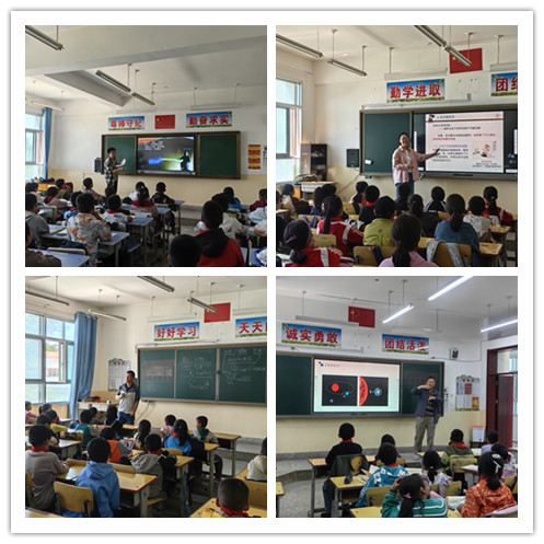 與會人員為王泉村鷺島小學孩子們帶來了系列科普報告,送學下鄉(xiāng),將習近平總書記智志雙扶要求落在具體關愛舉措中。材料輻照效應室副研究員、九三學社社員李宗臻以《名偵探柯南與科學探秘之返老還童》為題,通過動漫柯南中的故事情節(jié),引入了細胞凋亡、提純技術(shù)、化學反應等科學知識,生動地表達了科學源于生活,科學無處不在。原子分子結(jié)構(gòu)與動力學室副研究員、九三學社社員張瑞田以《絢麗的天文觀測和有趣的原子世界》為題, 告訴同學們天文望遠鏡為我們了解宇宙打開了一扇窗,萬物皆由原子組成,天文觀測主要是光譜,而加速器原子物理實驗為我們揭秘絢麗的天文現(xiàn)象搭建了一座橋梁。核電子學室高級工程師、九三學社社員蒲天磊作了題為《神奇的電——電的故事與安全用電》報告, 講述了人類從發(fā)現(xiàn)電到應用電的一系列故事,科普了相關原理,進行了安全用電教學。所級公共平臺高級實驗師、九三學社社員李小剛則通過《世界的大與小》,讓小朋友們認識了宇宙的浩瀚無邊和微觀世界的微不可見。豐富廣泛的主題,深入淺出的講解,讓同學們聽得入神、受益良多。