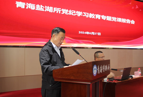 為深入學(xué)習(xí)貫徹習(xí)近平新時(shí)代中國特色社會主義思想和黨的二十大精神,進(jìn)一步學(xué)習(xí)貫徹習(xí)近平總書記關(guān)于黨紀(jì)學(xué)習(xí)教育重要講話和重要指示批示精神以及習(xí)近平總書記6月18日視察青海時(shí)的重要講話精神,引導(dǎo)全所黨員干部堅(jiān)定理想信念,強(qiáng)化黨性修養(yǎng),扎實(shí)推動黨紀(jì)學(xué)習(xí)教育走深走實(shí),6月26日至27日,青海鹽湖所黨委根據(jù)黨紀(jì)學(xué)習(xí)教育工作安排,在處級及以上黨員領(lǐng)導(dǎo)干部及黨支部書記培訓(xùn)班過程中舉辦全所黨員黨紀(jì)學(xué)習(xí)教育“七一”專題黨課報(bào)告會。報(bào)告會邀請中共青海省委黨校哲學(xué)教研部主任張建、中共青海省委黨校黨史黨建教研部副教授和寶軍講授專題黨課。所黨委委員、紀(jì)委委員、中層干部、黨支部委員、職工黨員和研究生黨員參會。會議由黨委書記、黨紀(jì)學(xué)習(xí)教育工作小組組長王永晏主持。??