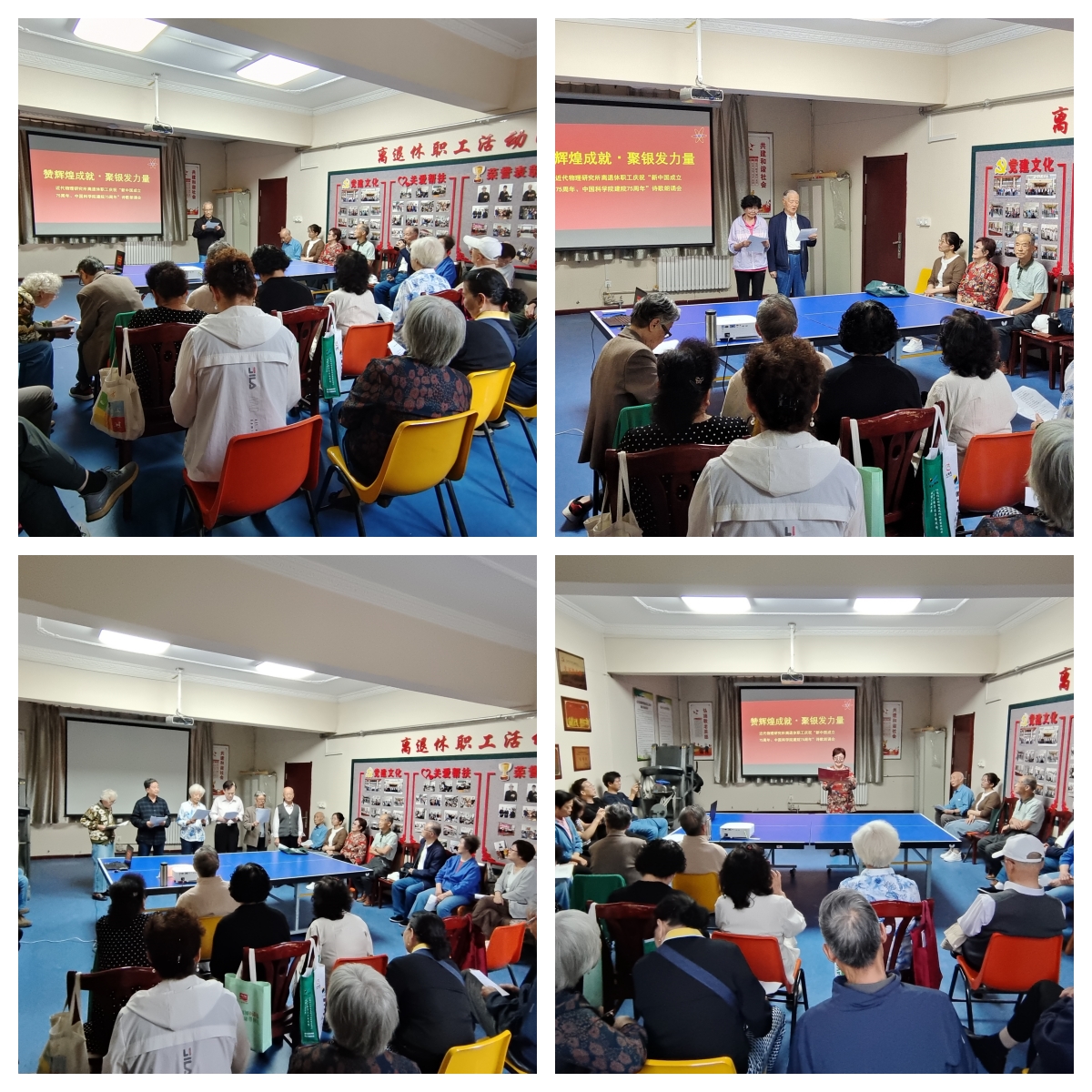 當(dāng)天下午3點,活動在老專家衛(wèi)增泉朗誦的《七十五載的輝煌贊歌》中拉開了帷幕。接著,《為祖國奉獻(xiàn)》《祖國禮贊》《75周年贊》《75年輝煌贊歌》《歌頌神州》等30多首詩歌接連誦讀。老專家周景兮朗誦的原創(chuàng)佳作《美麗中國》回顧了中華民族從站起來、富起來到強(qiáng)起來的偉大飛躍。老研究員靳根明朗誦的自創(chuàng)詩歌,洞悉全球風(fēng)云變幻,聚焦國際國內(nèi)新聞熱點,為大家傳遞了最新資訊。李君清、張?zhí)烀?、魏公琳、郭?yīng)祥、王素芳、韓國華六位老同志集體朗讀的《為祖國奉獻(xiàn)》,以鏗鏘之音深切表達(dá)對老一輩科學(xué)家為祖國無私奉獻(xiàn)的崇高敬意。大家以詩為媒,以文傳情,用質(zhì)樸無華的語言深情表達(dá)對祖國和中國科學(xué)院的無限熱愛。