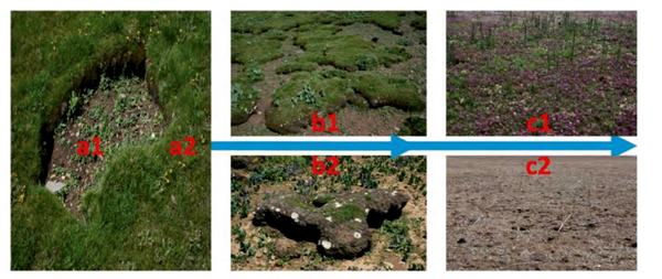 禿斑塊擴張與“黑土灘”退化草地的形成過程示意圖