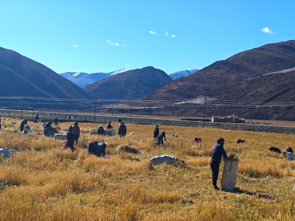 11月3日,為檢驗優(yōu)質燕麥品種和高產青稞品種在高海拔地區(qū)的產量,牧羊村“兩委”和駐村工作隊組織牧民開展青稞、燕麥收割工作。由于播種時間較晚,加之生育期降水較多,燕麥存在結實率低,籽粒不飽滿問題,青稞雖長勢良好,植株較高,但出現部分倒伏情況。