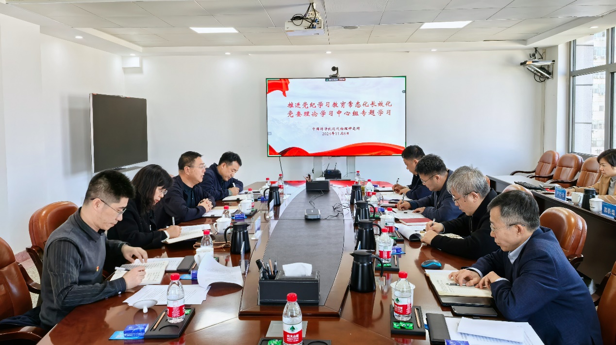 會(huì)上,胡正國以《建立健全黨紀(jì)學(xué)習(xí)教育常態(tài)化長效化機(jī)制,以嚴(yán)明黨紀(jì)為搶占科技制高點(diǎn)凝神聚力》為題作專題學(xué)習(xí)報(bào)告,帶領(lǐng)中心組成員集體學(xué)習(xí)了習(xí)近平總書記重要指示精神和黨中央、院黨組相關(guān)文件精神,回顧了研究所扎實(shí)開展黨紀(jì)學(xué)習(xí)教育情況,總結(jié)有益經(jīng)驗(yàn),查找問題不足,并對推進(jìn)研究所黨紀(jì)學(xué)習(xí)教育常態(tài)化長效化進(jìn)行了部署,明確了工作思路和職責(zé)分工。