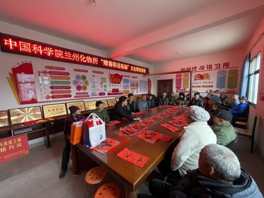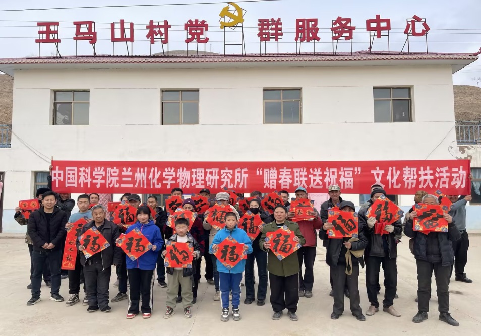 為豐富農(nóng)村精神文化生活,在2025年新春佳節(jié)來(lái)臨之際,1月23日下午,中國(guó)科學(xué)院蘭州化學(xué)物理研究所在會(huì)寧縣漢家岔鎮(zhèn)王馬山村開(kāi)展了“贈(zèng)春聯(lián) 送祝?!被顒?dòng),為幫扶村老鄉(xiāng)們送去研究所的關(guān)心問(wèn)候和美好祝福。