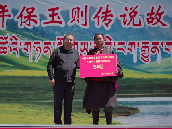 活動首日,幫扶團隊與白玉鄉(xiāng)政府舉行科技幫扶啟動儀式。海北站站長張振華研究員代表團隊向白玉鄉(xiāng)人民政府交接“高原生態(tài)和資源產(chǎn)業(yè)技術(shù)服務(wù)站”牌匾。該服務(wù)站的建立,標志著白玉鄉(xiāng)擁有了集技術(shù)咨詢、成果轉(zhuǎn)化和人才培養(yǎng)于一體的常態(tài)化科技支撐平臺,為當?shù)厣鷳B(tài)保護與產(chǎn)業(yè)發(fā)展提供長效智力支持。民盟青海省委副主委、西北高原所李玉林研究員向?qū)趲头龅哪裂虼寰栀?噸優(yōu)質(zhì)顆粒飼料,為緩解當?shù)啬撩裨陉P(guān)鍵生產(chǎn)時節(jié)面臨的飼料短缺困難提供幫助。