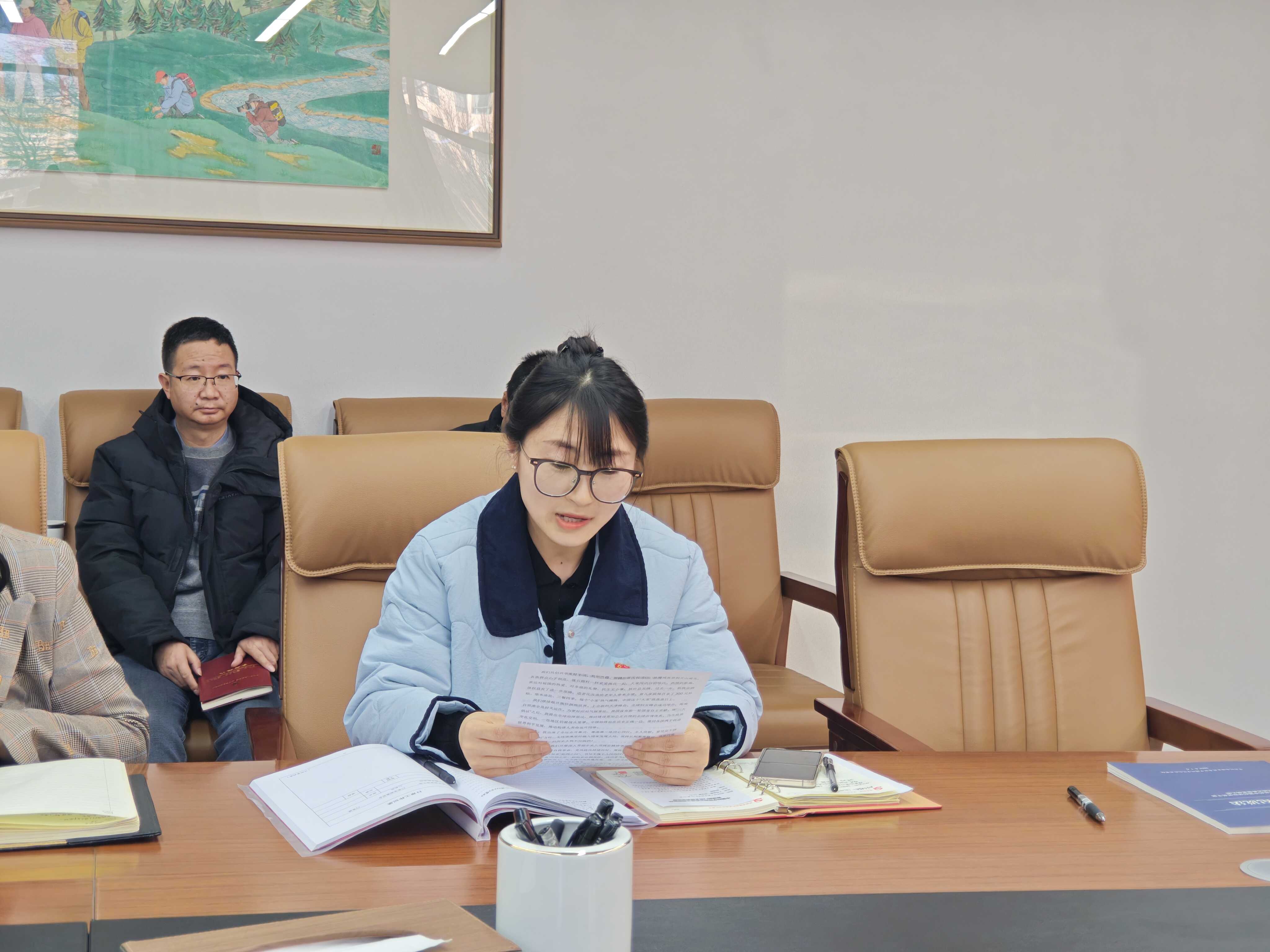 隨后,宣傳委員董亞慧和大家一起重溫了習(xí)近平總書記發(fā)表的2026年新年賀詞,“山海尋夢,不覺其遠(yuǎn);前路迢迢,闊步而行?!绷?xí)近平總書記的真情問候、殷殷囑托跨越山海、直抵人心,激蕩起億萬人民攜手并肩為夢想奮斗、為幸福打拼、把宏偉愿景變成美好現(xiàn)實(shí)的磅礴力量。