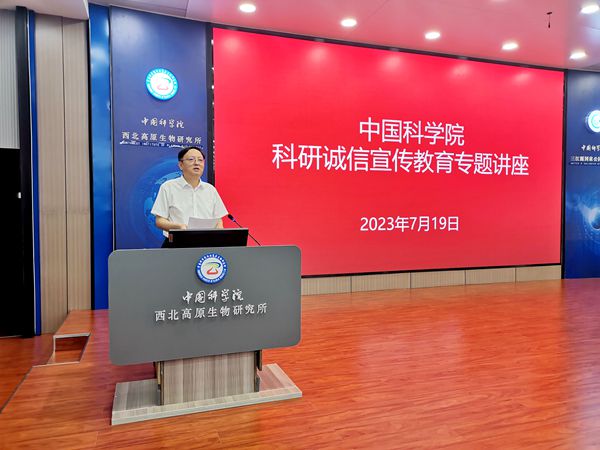 為深入開展學(xué)習(xí)貫徹習(xí)近平新時(shí)代中國(guó)特色社會(huì)主義思想主題教育,進(jìn)一步加強(qiáng)研究所科研誠(chéng)信建設(shè),教育引導(dǎo)科研人員和研究生遵守科研規(guī)范、增強(qiáng)誠(chéng)信自律,共同傳承中國(guó)科學(xué)院優(yōu)良傳統(tǒng)。7月19日下午,中國(guó)科學(xué)院科研誠(chéng)信宣傳教育專題講座在中國(guó)科學(xué)院西北高原生物研究所舉行。中國(guó)科學(xué)院蘭州分院紀(jì)檢組組長(zhǎng)、分黨組成員、系統(tǒng)單位紀(jì)委書記吳建剛,中國(guó)科學(xué)院巡視辦整改督辦室負(fù)責(zé)人程海濤,中國(guó)科學(xué)院西北高原生物研究所和青海鹽湖研究所的所領(lǐng)導(dǎo)、科研人員、特別研究助理、在學(xué)研究生等100余人參加報(bào)告會(huì)。報(bào)告會(huì)由西北高原所所長(zhǎng)陳世龍主持。