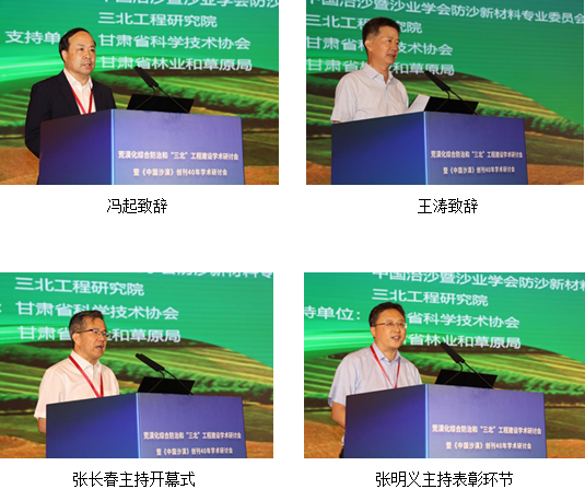 大會(huì)由中國(guó)地理學(xué)會(huì)沙漠分會(huì)、中國(guó)治沙暨沙業(yè)學(xué)會(huì)防沙新材料專業(yè)委員會(huì)、三北工程研究院共同主辦,甘肅省科學(xué)技術(shù)協(xié)會(huì)、甘肅省林業(yè)和草原局支持,中國(guó)科學(xué)院西北生態(tài)環(huán)境資源研究院、干旱區(qū)生態(tài)安全與可持續(xù)發(fā)展重點(diǎn)實(shí)驗(yàn)室、甘肅省科學(xué)技術(shù)期刊學(xué)會(huì)和《中國(guó)沙漠》編輯部共同承辦。西北研究院黨委書記張長(zhǎng)春主持開幕式。