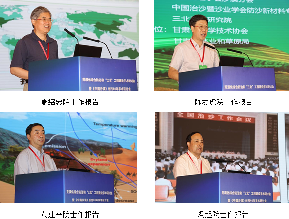 研討會(huì)以“荒漠化綜合防治和‘三北’工程建設(shè)”為主題,旨在深入學(xué)習(xí)貫徹落實(shí)習(xí)近平總書記關(guān)于加強(qiáng)荒漠化綜合防治和推進(jìn)生態(tài)工程建設(shè)重要講話精神,推動(dòng)山水林田湖草沙一體化保護(hù)和系統(tǒng)治理,總結(jié)和交流相關(guān)研究成果,促進(jìn)人與自然和諧共生。大會(huì)邀請(qǐng)了丁一匯、姚檀棟、侯立安、鄭曉靜、康紹忠、陳發(fā)虎、黃建平、馮起、方小敏、朱教君等10位院士和王濤、李新榮、楊小平、董治寶、陳亞寧、鹿化煜、屈建軍、楊文斌等8位專家作主題報(bào)告,并組織了14個(gè)分論壇的專題報(bào)告。南志標(biāo)、賴遠(yuǎn)明、楊志峰院士參會(huì)??凳啦⒉軓V超、盧琦、李廣、勾曉華、楊興國(guó)分別主持大會(huì)主題報(bào)告。與會(huì)專家學(xué)者圍繞荒漠化綜合防治和“三北”工程建設(shè)的新理念、新技術(shù),深入探討了荒漠化地區(qū)氣候變化與生態(tài)系統(tǒng)響應(yīng)、荒漠生態(tài)修復(fù)與治理、全球氣候變化對(duì)西北暖濕化趨勢(shì)的影響等前沿問(wèn)題。