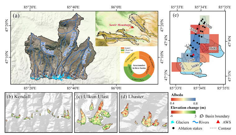 中國(guó)科學(xué)院西北生態(tài)環(huán)境資源研究院王璞玉研究員團(tuán)隊(duì)依托阿爾泰山冰凍圈科學(xué)與可持續(xù)發(fā)展綜合觀測(cè)研究站,綜合運(yùn)用模型模擬、衛(wèi)星遙感技術(shù)和野外觀測(cè),系統(tǒng)分析了薩吾爾山冰川反照率變化及其與冰川消融的關(guān)系,重建了該區(qū)冰川物質(zhì)平衡序列,闡述了其與融水徑流的變化趨勢(shì)以及對(duì)河川徑流的影響。