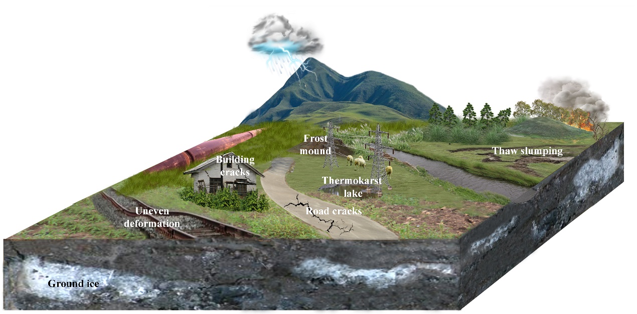 研究結(jié)果顯示,在氣候變暖和環(huán)境變化的影響下,區(qū)域凍土表現(xiàn)出區(qū)域的退化和局部的進(jìn)化。多年凍土分布、地下冰、土體水熱狀態(tài)等的時(shí)空變化影響區(qū)域生態(tài)系統(tǒng)分布和演替、能水和碳循環(huán)以及寒區(qū)工程安全。凍土變化過程中,對(duì)寒區(qū)環(huán)境致災(zāi)和致利效應(yīng)隨凍土退化過程相互轉(zhuǎn)化。凍土的退化是寒區(qū)環(huán)境變化的重要驅(qū)動(dòng)因素,定量地探索凍土變化對(duì)區(qū)域水-碳資源和生態(tài)環(huán)境的影響及其效應(yīng)轉(zhuǎn)變過程,利用致利效應(yīng),預(yù)防致災(zāi)效應(yīng),科學(xué)應(yīng)對(duì)未來氣候變暖帶來的挑戰(zhàn)。