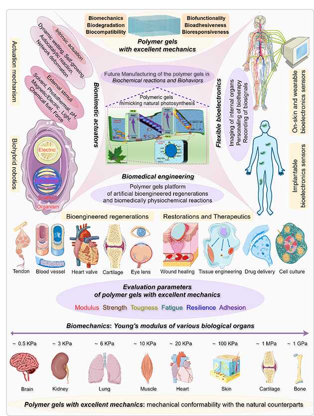 圖1.?具有優(yōu)異力學性能聚合物凝膠的典型應用和評價參數(shù)