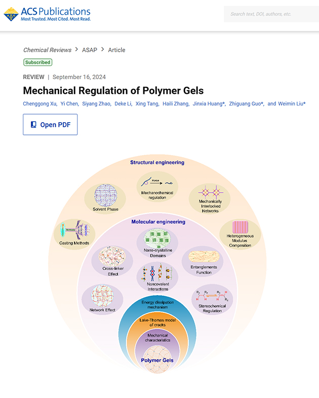 蘭州化物所與湖北大學合作在Chemical Reviews發(fā)表“聚合物凝膠的力學調(diào)控”綜述文章