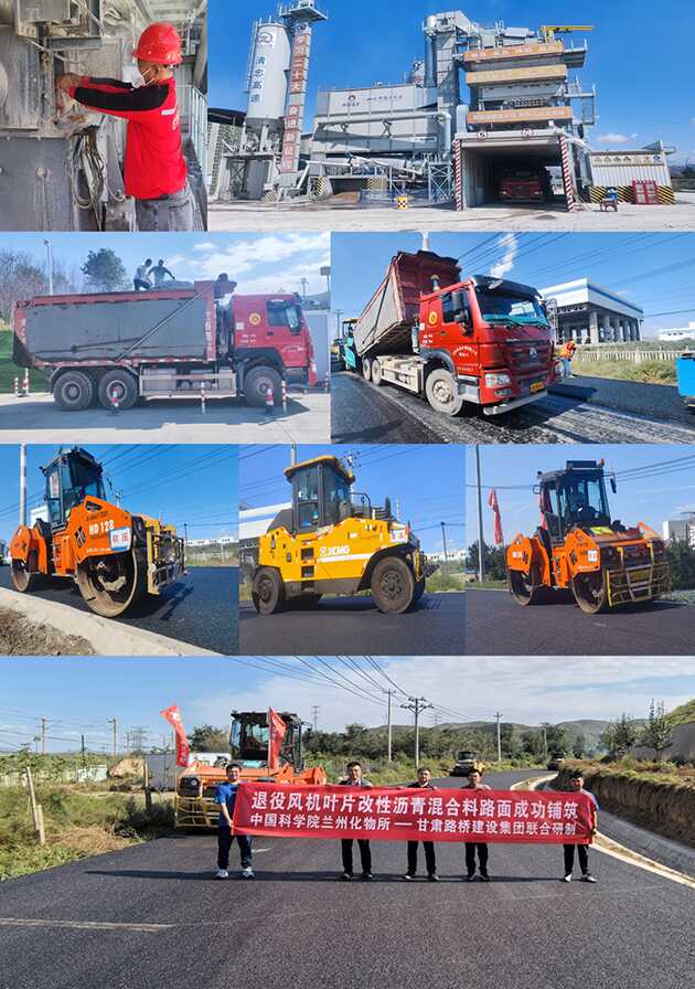 蘭州化物所完成退役風機葉片改性瀝青混合料示范應用路面鋪筑