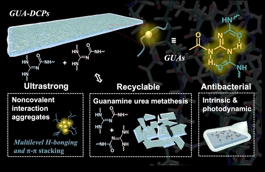 圖1. 動態(tài)胍脲結(jié)構(gòu)和具有多重性質(zhì)聚胍脲材料的示意圖