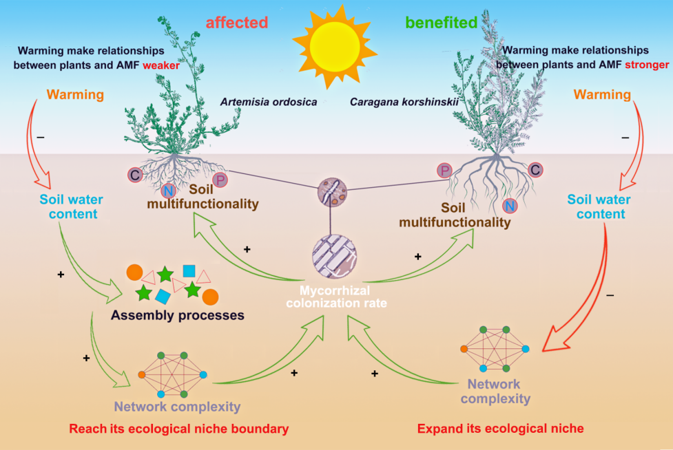 該研究揭示了氣候變暖背景下旱區(qū)生態(tài)系統(tǒng)植物-微生物互作的物種特異性響應(yīng)機(jī)制,為預(yù)測旱區(qū)生態(tài)功能演變和制定適應(yīng)性管理策略提供了重要理論依據(jù)。