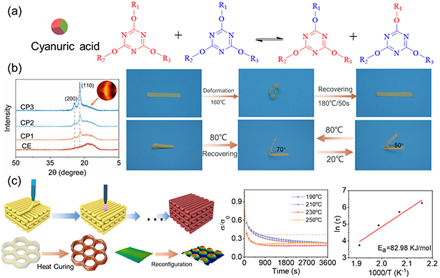 圖1.?(a)三嗪環(huán)交換、(b)雙向SMCE和(c)4D打印SMCE