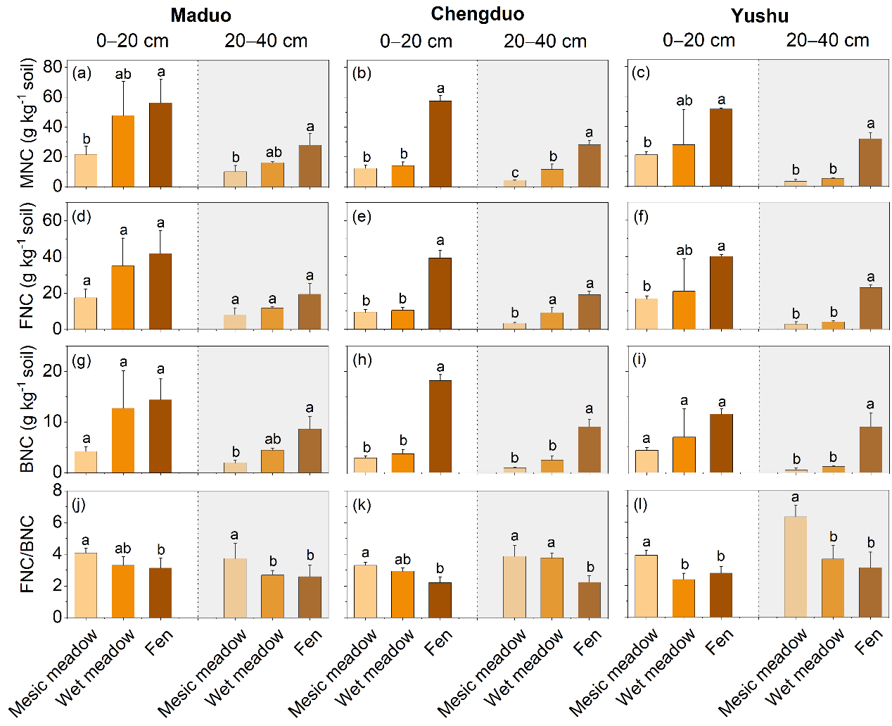 中國(guó)科學(xué)院西北生態(tài)環(huán)境資源研究院李玉強(qiáng)研究員團(tuán)隊(duì),在青藏高原沿高寒草甸-濕地連續(xù)體設(shè)置了27個(gè)采樣點(diǎn),通過測(cè)定氨基糖等指標(biāo),系統(tǒng)揭示了水文變化對(duì)土壤微生物殘?bào)w碳和顆粒有機(jī)碳積累及其對(duì)土壤有機(jī)碳貢獻(xiàn)的影響。