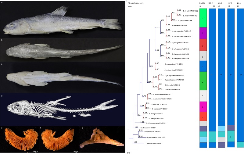 雅礱裸裂尻魚(Schizopygopsis yalongensis)模式標本(a-g)及分子物種界定(h)