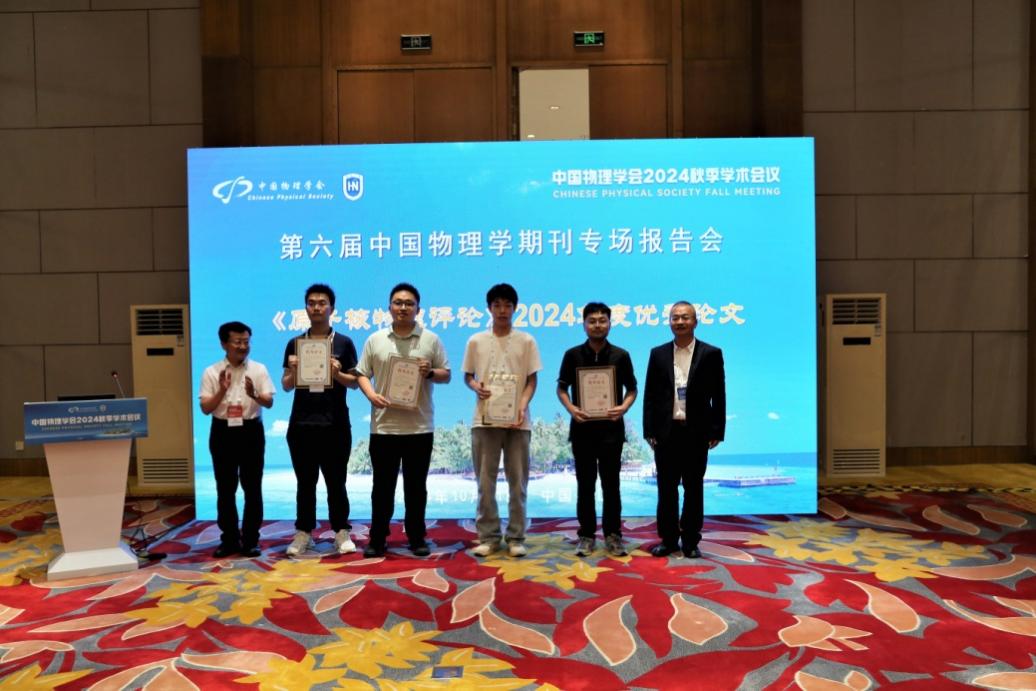 中國物理學期刊專場報告會已連續(xù)舉辦五屆。本屆專場報告會由中國物理學會出版工作委員會主辦,中國科學院物理研究所/海南大學承辦,《物理學報》《中國科學: 物理學 力學 天文學》《科學通報》《原子核物理評論》等20多家國內物理學相關期刊共同舉辦?!对雍宋锢碓u論》編輯部首次參加此項專題活動。近代物理所黨委原書記趙紅衛(wèi)院士、副所長王猛研究員為獲得《原子核物理評論》2024年度優(yōu)秀論文的作者代表頒獎。中國科學技術大學杰出講席教授、上??萍即髮W校長封東來院士、近代物理所趙紅衛(wèi)院士以及物理研究所曹則賢研究員分別做了特邀報告。