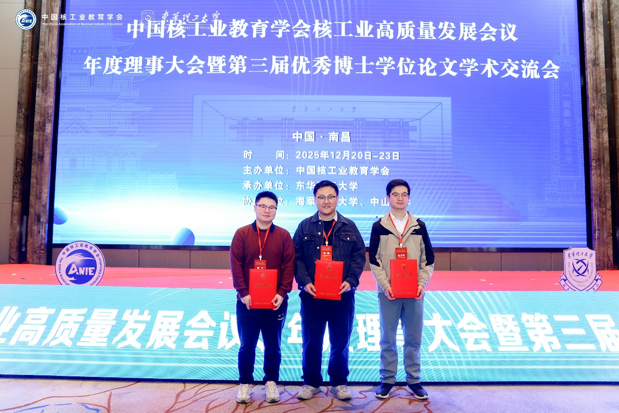會(huì)議公布了中國(guó)核工業(yè)教育學(xué)會(huì)第三屆全國(guó)優(yōu)秀博士學(xué)位論文獲獎(jiǎng)結(jié)果,2025屆博士生寇維的學(xué)位論文《核子內(nèi)部結(jié)構(gòu)和QCD非微擾性質(zhì)若干研究》榮獲優(yōu)秀博士學(xué)位論文二等獎(jiǎng),2025屆博士生趙世偉的學(xué)位論文《SiC功率器件結(jié)構(gòu)對(duì)其單粒子效應(yīng)的影響機(jī)理研究》、2024屆博士生成釗意的學(xué)位論文《面向核能的FeCrV系中熵合金熱學(xué)、力學(xué)及抗輻照性能研究》榮獲優(yōu)秀博士學(xué)位論文三等獎(jiǎng),陳旭榮研究員、劉杰研究員和孫建榮研究員獲得優(yōu)秀指導(dǎo)教師稱(chēng)號(hào)。此外,近代物理所與四川大學(xué)聯(lián)合培養(yǎng)博士生黃宇的論文榮獲優(yōu)秀博士學(xué)位論文一等獎(jiǎng)。