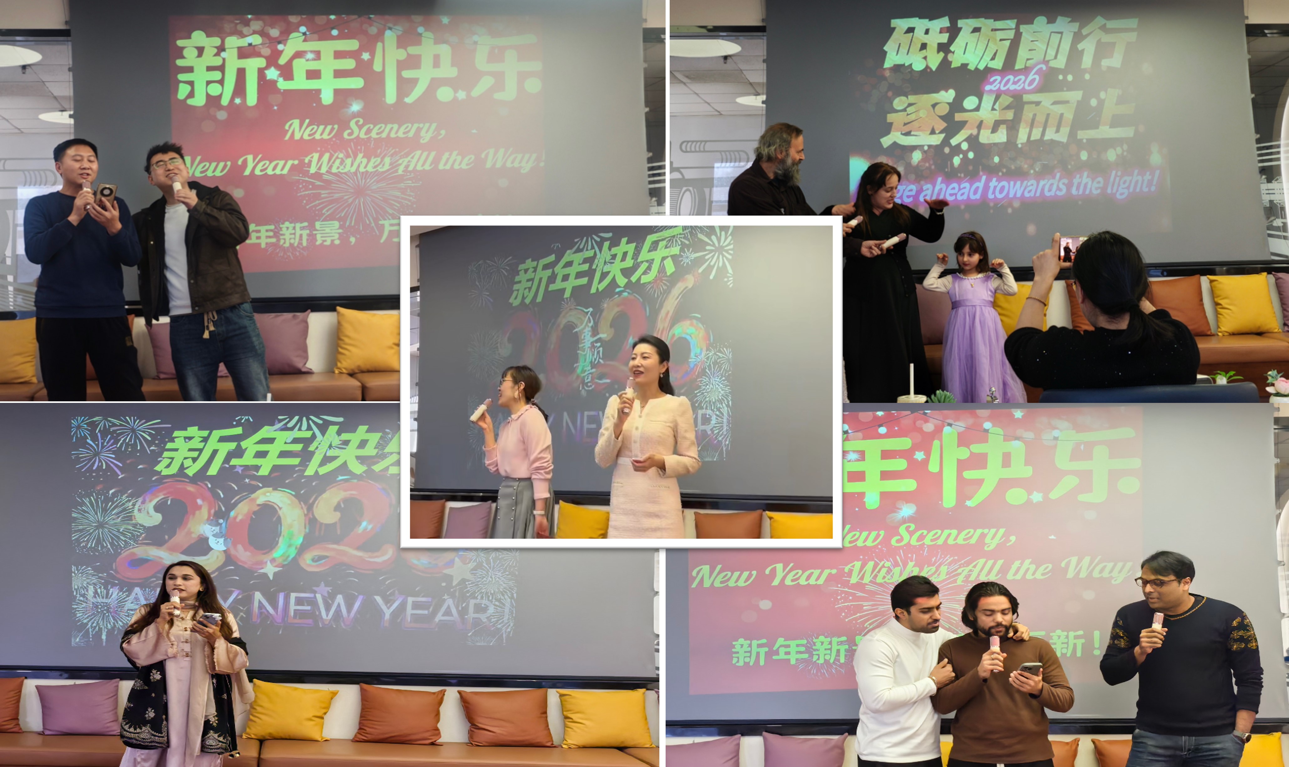 隨后的才藝表演環(huán)節(jié)精彩連連,各具特色,展現(xiàn)出豐富多彩的異域風(fēng)情。活動(dòng)以合唱經(jīng)典歌曲《朋友》開場(chǎng),歡快的旋律瞬間點(diǎn)燃了節(jié)日氛圍,引起大家情感的共鳴,傳遞了跨越文化的友誼;三名留學(xué)生博士用中文演唱《新年好》時(shí), 傳遞的不僅是節(jié)日祝福,更是跨越時(shí)空的真誠(chéng)融入;一首豪邁又不乏細(xì)膩、溫暖又治愈的《蘋果香》,悠長(zhǎng)的旋律久久縈繞在大家的心間。現(xiàn)場(chǎng)氣氛熱烈,嘉賓踴躍登場(chǎng),有外籍員工全家攜手登臺(tái)演唱《小豬睡覺》為活動(dòng)注入了暖意與童真;有外籍人員的家屬們紛紛上臺(tái)為大家?guī)碜约好褡搴图亦l(xiāng)的歌曲,歌聲宛如一道道橋梁,將遙遠(yuǎn)的故鄉(xiāng)與此刻的舞臺(tái)連接,生動(dòng)詮釋了“此心安處是吾鄉(xiāng)”,展現(xiàn)了研究所大家庭包容、有愛的濃厚氛圍。