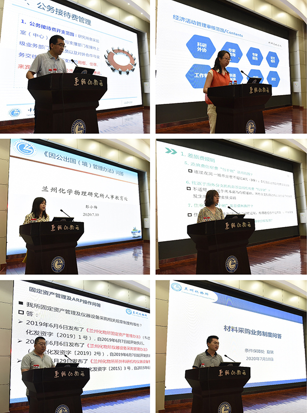 為繼續(xù)深化為科研人員減負(fù),進(jìn)一步解決科研經(jīng)費(fèi)“報(bào)銷繁”問題,使規(guī)章制度真正發(fā)揮促進(jìn)科學(xué)、規(guī)范化管理的作用,7月10日上午,中國(guó)科學(xué)院蘭州化學(xué)物理研究所組織開展了經(jīng)濟(jì)活動(dòng)規(guī)章制度宣講培訓(xùn),各實(shí)驗(yàn)室(中心)秘書、科研財(cái)務(wù)助理、管理部門相關(guān)人員約100人參加培訓(xùn)會(huì)。青島中心、蘇州研究院通過視頻參會(huì)。