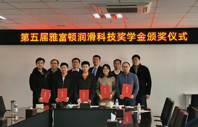 1月27日,中國科學(xué)院蘭州化學(xué)物理研究所第五屆雅富頓潤滑科技獎(jiǎng)學(xué)金頒獎(jiǎng)儀式在青島研發(fā)中心舉行。雅富頓添加劑公司亞太區(qū)技術(shù)總監(jiān)梁克堅(jiān)先生、蘭州化物所相關(guān)部門負(fù)責(zé)人參加了頒獎(jiǎng)儀式。喻萍、蘇懷剛、鞠超、張立強(qiáng)、白常寧等5名學(xué)生獲2021年度獎(jiǎng)學(xué)金。