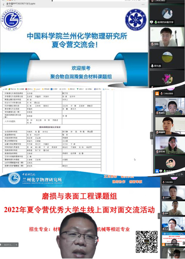 7月10至15日,中國科學(xué)院蘭州化學(xué)物理研究所舉辦了2022年“蘭化行,科研情”優(yōu)秀大學(xué)生線上夏令營。本次夏令營與中科院蘭州教育基地“我的科學(xué)夢(mèng)”優(yōu)秀大學(xué)生暑期學(xué)校同期舉行,來自吉林大學(xué)、青海大學(xué)、山東師范大學(xué)等高校的70名優(yōu)秀大學(xué)生參加了夏令營。結(jié)合疫情防控要求,夏令營以線上形式舉行。
