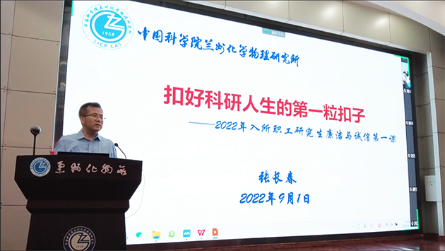 9月1日,中國科學院蘭州化學物理研究所為2022年新入所人員講授“廉潔與誠信第一課”,2022年新入所職工和研究生160余人參加了會議。