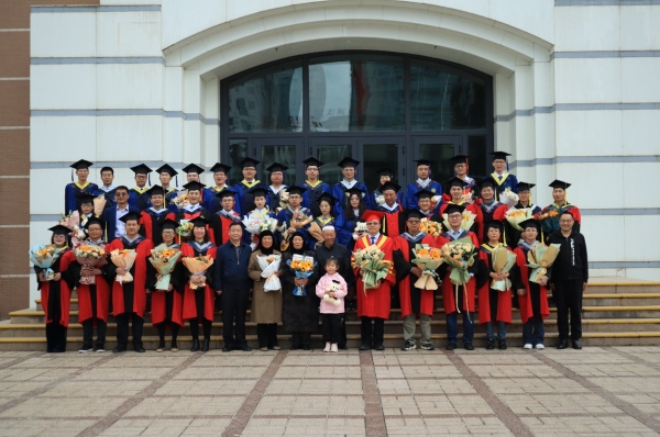 會上,王建萍宣讀了學(xué)位授予決定,畢業(yè)生們依次上臺,學(xué)位評定委員會主席吳志堅(jiān)對每位畢業(yè)生扶正流蘇、頒發(fā)紀(jì)念品并合影留念。