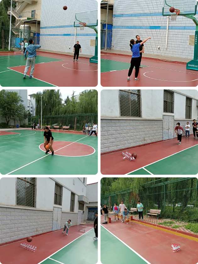 師生籃球友誼賽分導師組和學生組,最終學生組以46比40的成績戰(zhàn)勝導師組?;@球趣味活動包括定點投籃、趣味“保齡球”、籃球蹦蹦跳和天旋神射手四個項目,根據(jù)規(guī)則分別獲得不同數(shù)量的印章,最終通過累計印張數(shù)評出不同等次的獎勵。
