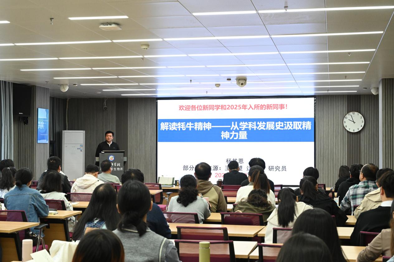 8日上午,入學(xué)典禮在莊嚴(yán)的國歌聲中拉開序幕。陳世龍首先作了“弘揚(yáng)科學(xué)精神,加強(qiáng)學(xué)風(fēng)建設(shè)”專題報(bào)告,強(qiáng)調(diào)了在科研的道路上,傳承好科學(xué)精神,遵循唯真求實(shí)、嚴(yán)謹(jǐn)本分、非所屬者不取、非原創(chuàng)者謙卑的原則和系好學(xué)術(shù)人生的第一??圩拥闹匾?。隨后,楊其恩作了“解讀牦牛精神——從學(xué)科發(fā)展史汲取精神力量”專題報(bào)告,向大家講述了“牦牛精神”蘊(yùn)含的深刻內(nèi)涵,他希望大家能夠從研究所的文化中汲取精神力量,時(shí)刻保持對科研工作的熱情和敬畏之心、求知欲和好奇心。最后,入學(xué)典禮特邀退休職工李英年研究員作了“熱愛工作 勤勞耕耘——談科學(xué)家精神”專題報(bào)告,他通過分享40多年的工作經(jīng)歷與感悟,告訴大家精神的培養(yǎng)需要關(guān)注細(xì)節(jié)、廣學(xué)博覽、在交流與思考中培養(yǎng)創(chuàng)新意識,以卓然眼界、超群膽識、堅(jiān)定信念、敢天下之先。